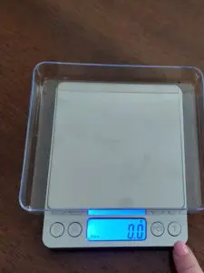 Whether you purchase your own bowl or tray for weighing, or your scale comes with one, it still adds weight. Naturally, this means that any measurement you take with the added weight of the scale will be way off.